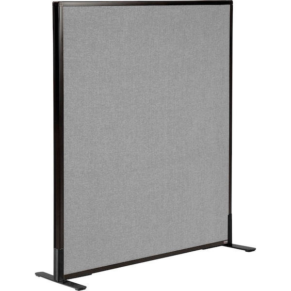 Gray Freestanding Office Partition Panel 36-1/4inW x 42inH. Freestanding Office Partitions provide versatile privacy for cubicles, reception spaces, call centers and more. Panels are made using 1-3/4in thick fabric upholstered panel with an MDF frame and honeycomb core covered with heavy tackable liner for structural strength. Panel trim is finished with self-extinguishing extruded polymer for optimum safety and rigidity. Panels are flame retardant to meet the California 117 flammability standard. Steel T-legs ensure reliable freestanding stability, and make panels easy to adjust and rearrange. Partitions measure 36-1/4inW X 42inH. 1 Year Limited Warranty.