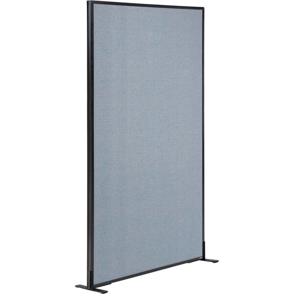 Blue Freestanding Office Partition Panel 36-1/4inW x 72inH. Freestanding Office Partitions provide versatile privacy for cubicles, reception spaces, call centers and more. Panels are made using 1-3/4in thick fabric upholstered panel with an MDF frame and honeycomb core covered with heavy tackable liner for structural strength. Panel trim is finished with self-extinguishing extruded polymer for optimum safety and rigidity. Panels are flame retardant to meet the California 117 flammability standard. Steel T-legs ensure reliable freestanding stability, and make panels easy to adjust and rearrange. Partitions measure 36-1/4inW X 72inH. 1 Year Limited Warranty.