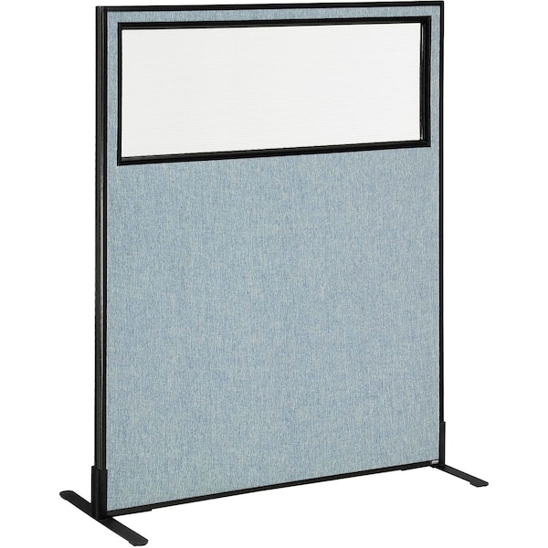 Interion Freestanding Office Partition Panel with Partial Window, 48-1/4inW x 60inH, Blue