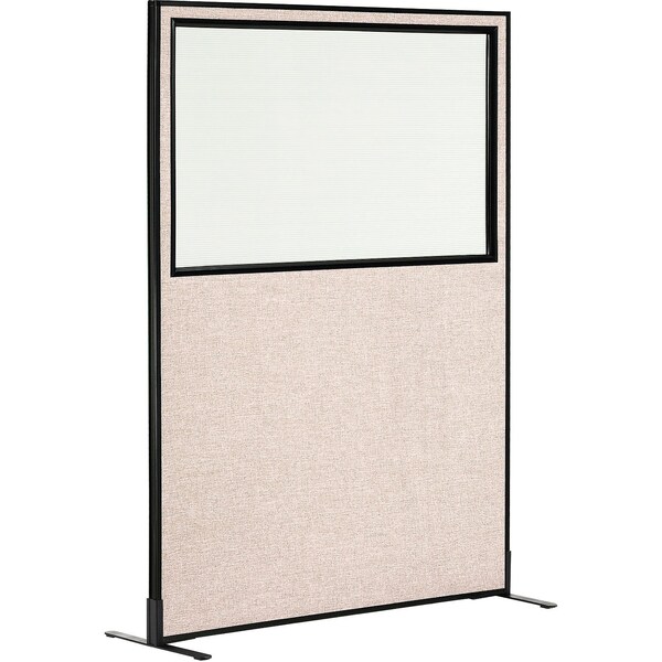 Interion Freestanding Office Partition Panel with Partial Window, 48-1/4inW x 96inH, Tan