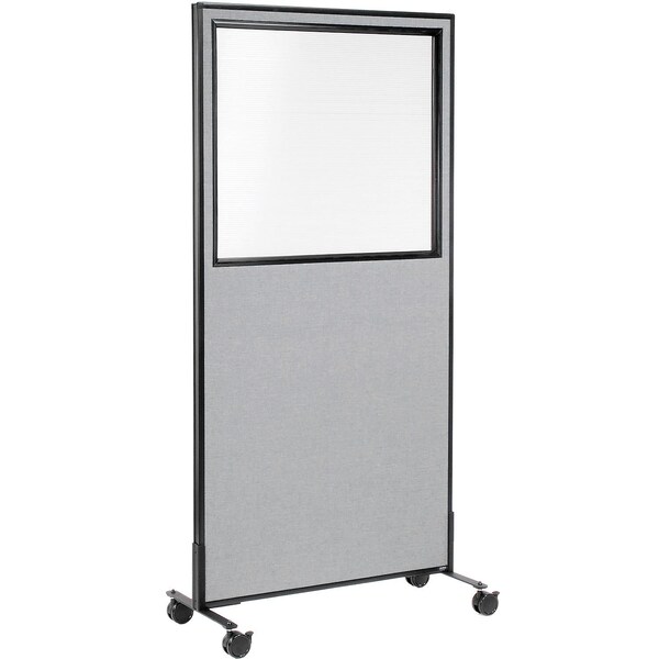 Interion Mobile Office Partition Panel with Partial Window, 36-1/4inW x 75inH, Gray