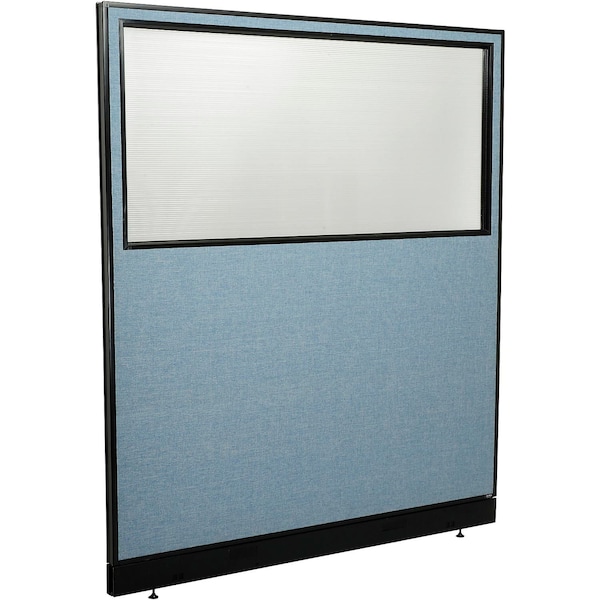 Interion Office Partition Panel with Partial Window & Pass-Thru Cable, 60-1/4inW x 64inH, Blue