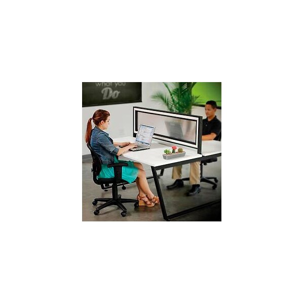 To be used in conjunction with the Interion By Global Industrial Double Sided Open Office Desk 694859. This translucent partition incorporates a 5mm thick fluted polycarbonate divider screen and is supported by steel brackets. Includes all necessary hardware to install into the center of the desk, giving each user a bit of privacy when working in a shared environment while letting ambient light through. Overall panel dimensions: 55inW x 16inH. Window panel dimensions: 49inW x 10inH.