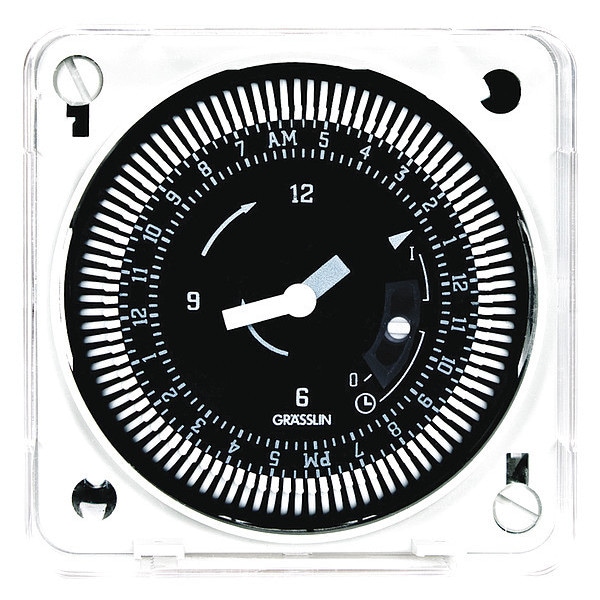 Electromechanical Timer, 24-Hour, Number of Poles 1, Contact Form SPDT, Voltage 120V AC, Amps 21 A, Contact HP @ 120V 1 hp, Contact HP @ 240V 2 hp, Day Skipper No, Enclosure Type Plastic, Min. Time Setting 15 min, Max. Time Setting 23 hr 45 min, Max. On/Off Cycles 48, Width 3 5/16 in, Depth 2 5/16 in, Height 3 51/64 in, Number of Trippers Included 96, Operating Temp. -40 Degrees to 185 Degrees F, Description/Special Features Override Switch, Synchronous Motor, Mount Flush