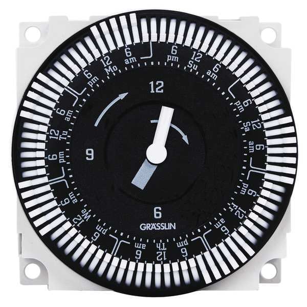Electromechanical Timer, 7-Day, Number of Poles 1, Contact Form SPDT, Voltage 120V AC, Amps 21 A, Contact HP @ 120V 1 hp, Contact HP @ 240V 2 hp, Day Skipper Yes, Enclosure Type Steel, NEMA Rating 3R, Min. Time Setting 2 hr, Max. Time Setting 6 days 22 hr, Max. On/Off Cycles 48, Width 3 5/16 in, Depth 2 5/16 in, Height 3 1/2 in, Number of Trippers Included 96, Operating Temp. -40 Degrees to 185 Degrees F, Description/Special Features True Clock Face, Mount Panel, Standards cCSAus, CE, cRUus