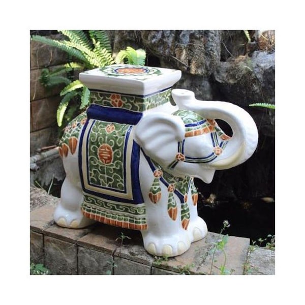 Porcelain Elephant Stool, White Mix - Large