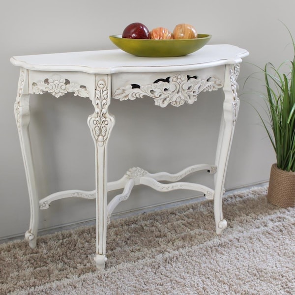 Windsor Hand-Carved Half Moon Console Table, Antique White