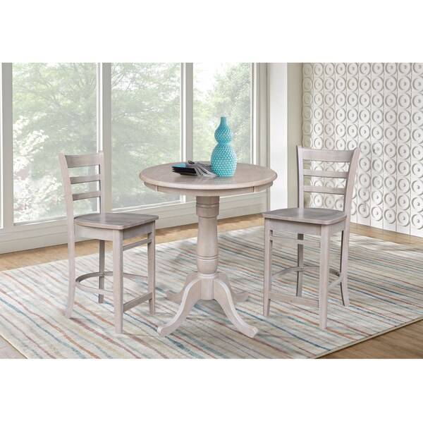 30 in. Round Pedestal Gathering Height Table with 2 Counter Height Stools