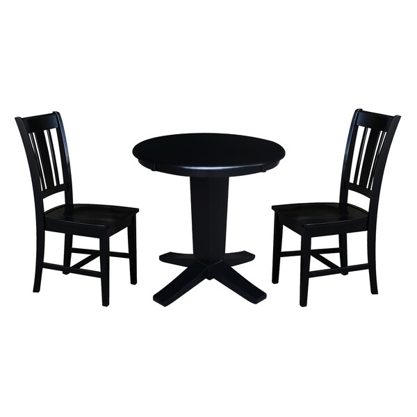 30 in. Solid Wood Round Top Dining Table with 2 Chairs, Black