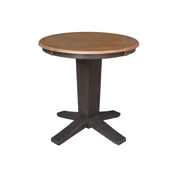 30 in. Solid Wood Round Top Pedestal Dining Table - 29.9 in. High, Hickory/Washed Coal