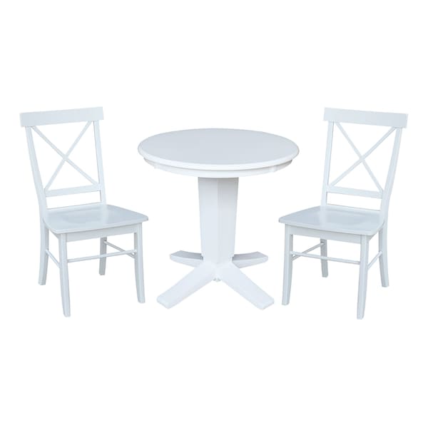 30 in. Solid Wood Round Top Pedestal Dining Table with 2 Chairs, White