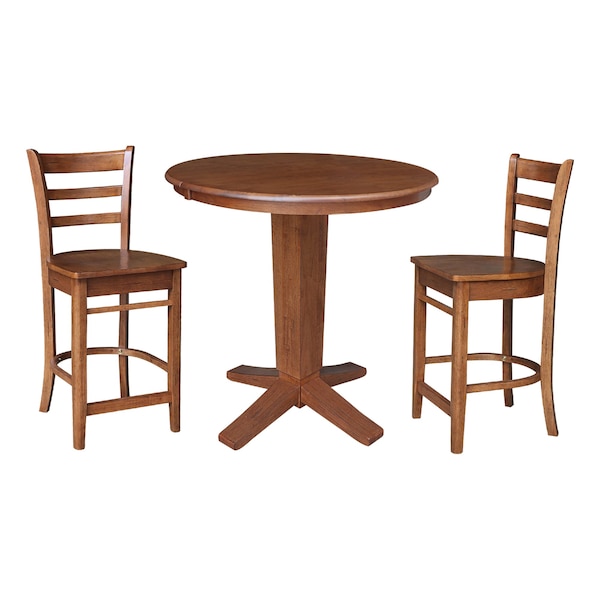 36 in. Solid Wood Round Extension Dining Table with 2 Counter Height Stools in Distressed Oak
