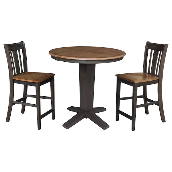 36 in. Solid Wood Round Extension Dining Table with 2 Counter Height Stools in Hickory/Washed Coal