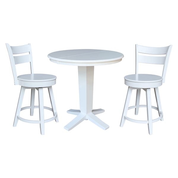 36 in. Solid Wood Round Extension Dining Table with 2 Counter Height Stools
