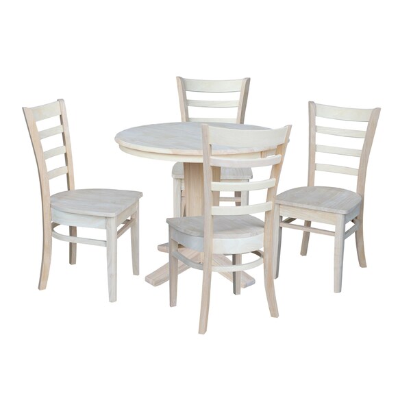 36 in. Solid Wood Round Extension Dining Table with 4 Dining Chairs, Unfinished
