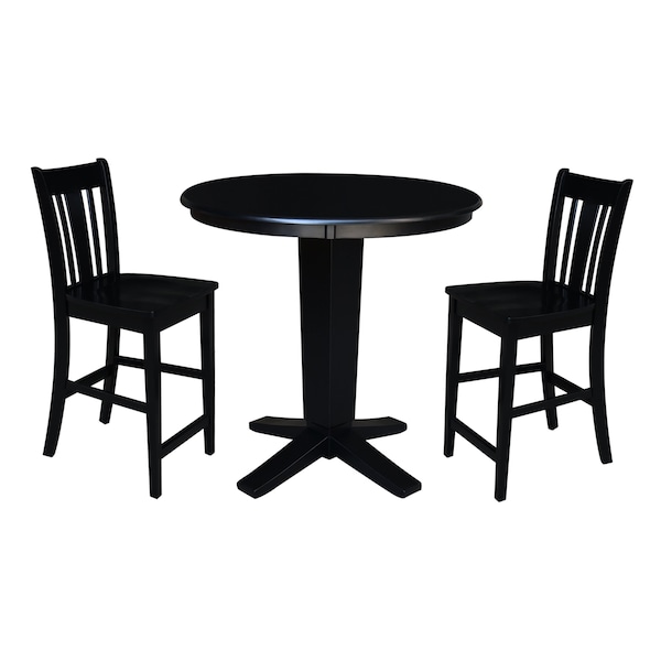 36 in. Solid Wood Round Top Dining Table with 2 Counter Height Stools in Black
