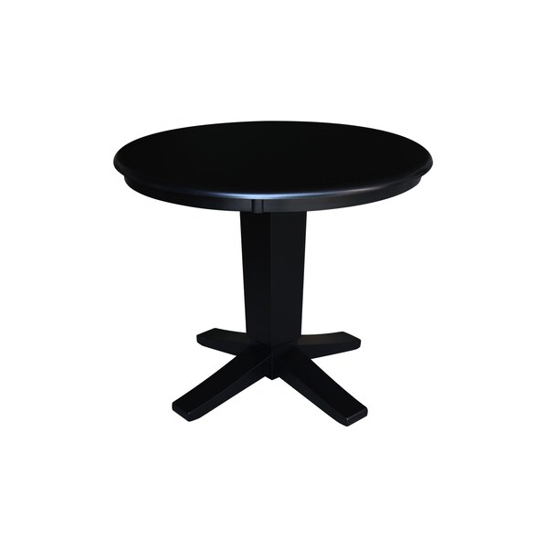 36 in. Solid Wood Round Top Pedestal Dining Table - 29.9 in. High, Black