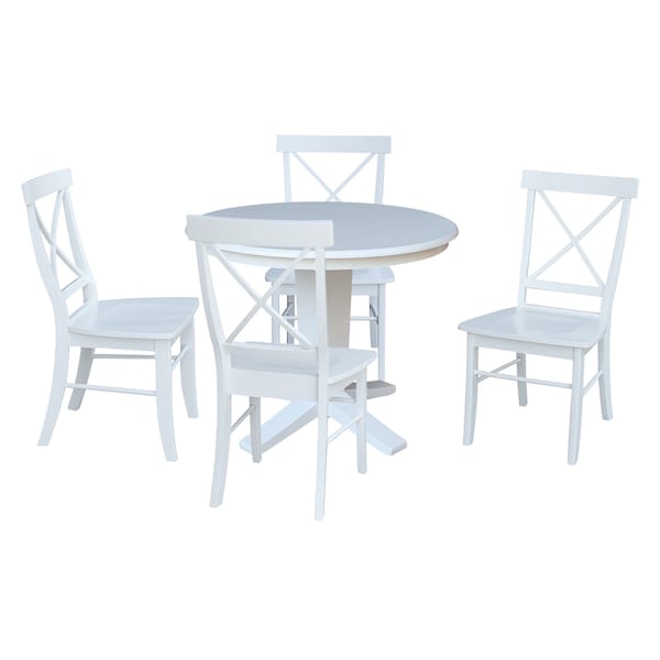 36 in. Solid Wood Round Top Pedestal Dining Table with 4 Chairs in White