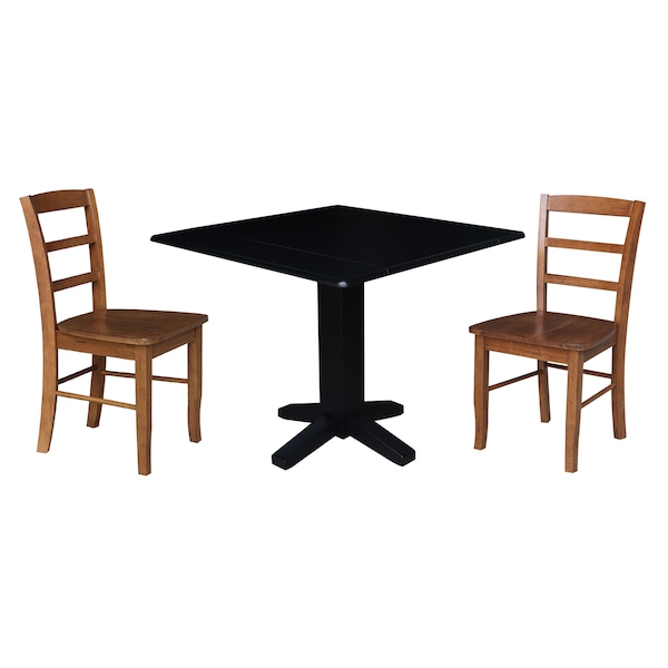 36 in. Solid Wood Square Dual Drop Leaf Dining Table with 2 Chairs in Black/Distressed Oak