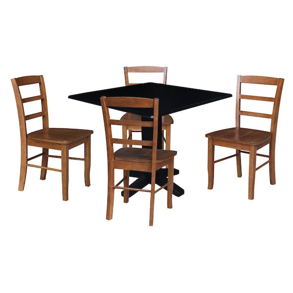 36 in. Solid Wood Square Dual Drop Leaf Dining Table with 4 Chairs in Black/Distressed Oak