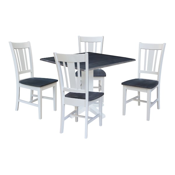 36 in. Solid Wood Square Dual Drop Leaf Dining Table with 4 Chairs in White/Heather Gray