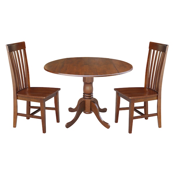 42 in. Dual Drop Leaf Table with 2 Slat Back Dining Chairs - 3 Piece Dining Set