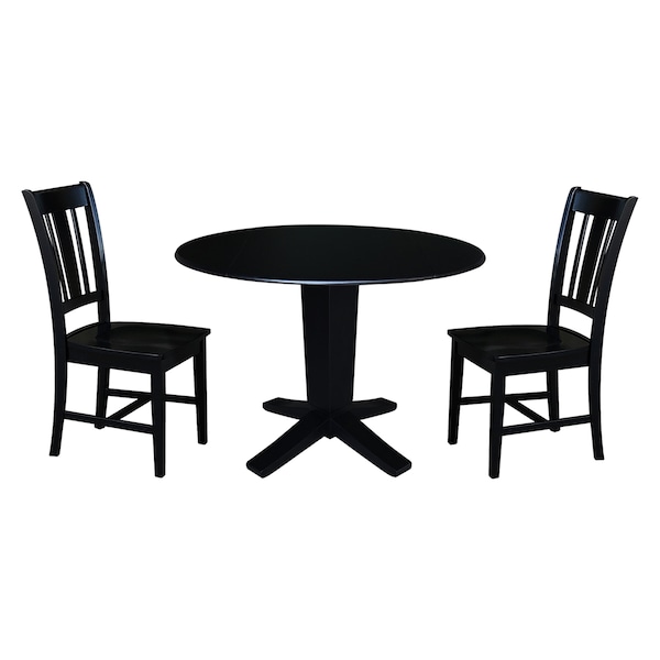 42 in. Solid Wood Dual Drop Leaf Dining Table with 2 Chairs in Black