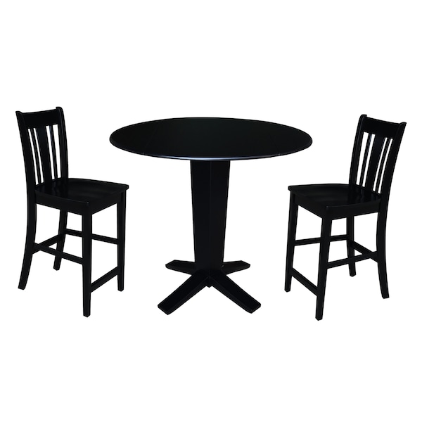 42 in. Solid Wood Dual Drop Leaf Dining Table with 2 Counter Height Stools in Black