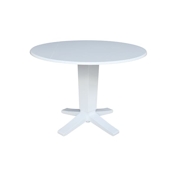 42 in. Solid Wood Round Dual Drop Leaf Dining Pedestal Table - 30.3 in.High in White