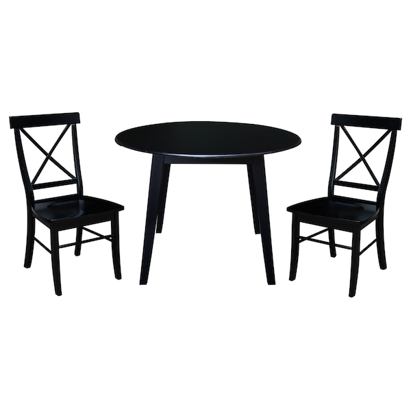 42 in. Solid Wood Round Dual Drop Leaf Dining Table with 2 Chairs in Black