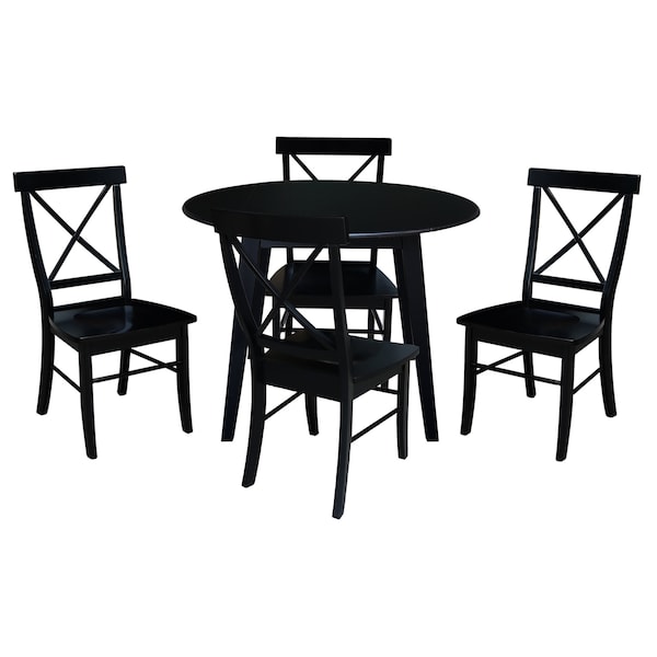 42 in. Solid Wood Round Dual Drop Leaf Dining Table with 4 Chairs in Black
