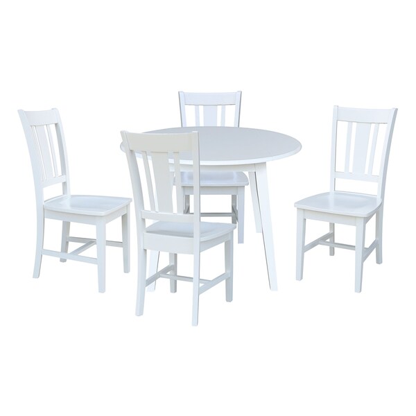 42 in. Solid Wood Round Dual Drop Leaf Dining Table with 4 Chairs in White
