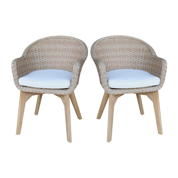 Outdoor Set of Two Wicker Dining Chairs with Cusions