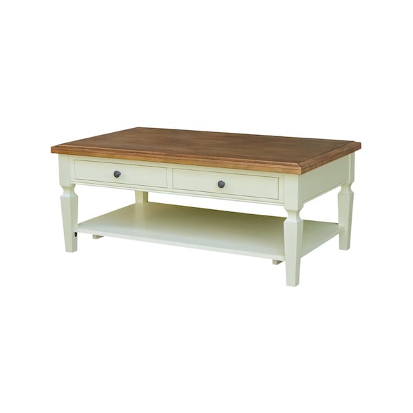 Rectangle Vista Solid Wood Coffee Table with Shelf, 48X28X20, Hickory/Shell
