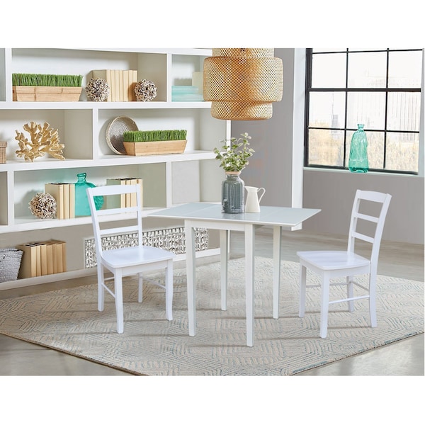 Small Dual Drop Leaf Dining Table with 2 Madrid LadderBack Chairs - 3 Piece Dining Set