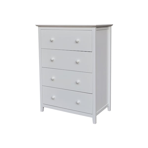 Solid Wood Bedroom Dresser/Chest with 4 Drawers, White