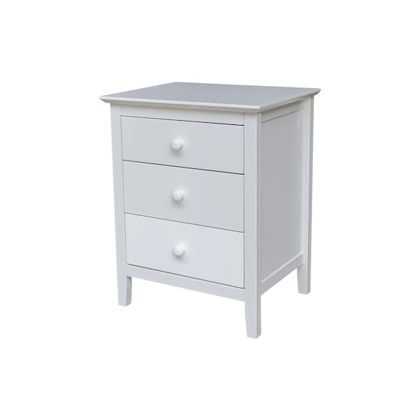 Solid Wood Bedroom Nightstand with 3 Drawers, White