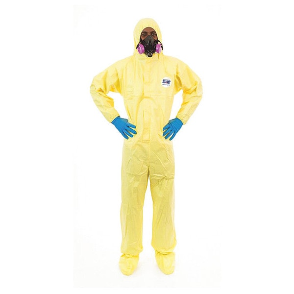 Chem Splash Coverall w Hood,S,Yel,PK12, Package Quantity 12