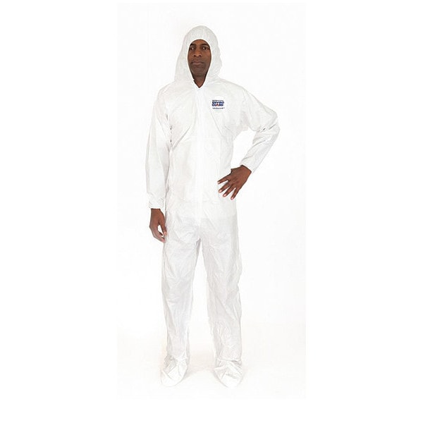 Coverall w Hood,Boot,M,White,PK25, Package Quantity 25