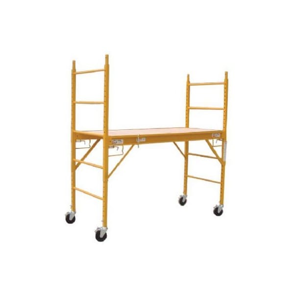 6', Contractor Grade MultiPurpose Scaffold, Constructed With Plywood Steel, Powder Coat Finish For Durability, 1000 LB Maximum Work Load Capacity, No Tools Required, Optional Accessories Available, Weight 154 LB, Made To Baker Style Specifications, Platform Is Approximately 295 x 72''
