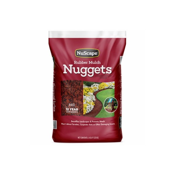 Nuscape, 8 CUFT, Red, Rubber Nugget Ground Cover, Perfect Loose Fill Ground Cover For Playgrounds Commercial Landscaping Applications, Provides Superior Drainage Minimizes Dust, Keeping Children Clean While At Play, 100 Recycled Rubber, Average Size Piece 12 To 1 In Length, 999 Wirefree Provides A Soft Surface For Play, Inhibits Growth Of Moss Fungi, Creates Pliable, Resilient Surface, Rated As The Safest Groundcover In The Market, IPEMA Certified To ASTM