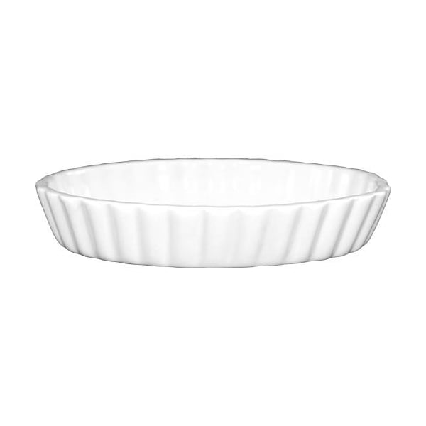 Oval crème brûlée cup; 7 oz capacity; European white; Dishwasher and microwave safe; Sold by the case of 2 dozen