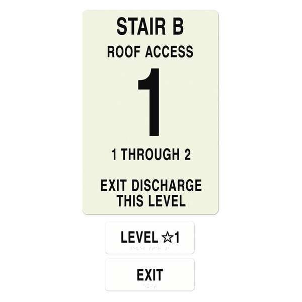 NFPA Sign, Stair/Exit/Roof Access, English, Plastic, Tape, 18 in, 12 in, Black/White
