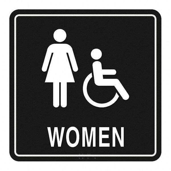 Regulatory Sign, Height 7-3/4 In., Width 7-3/4 In., Legend Women/Accessible