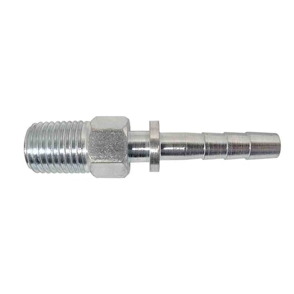 Interstate Pneumatics FM44RL 1/4" MPT Special Steel Fitting. This professional contractor / professional grade hose barb is machined from a solid steel stock using CNC machine center. Steel is corrosion resistant and provides a tight seal on the hose. For use with PVC, PU, Rubber hose or tubing and to be secured with a hose clamp or crimped ferrule. Maximum working pressure 300 psi.
