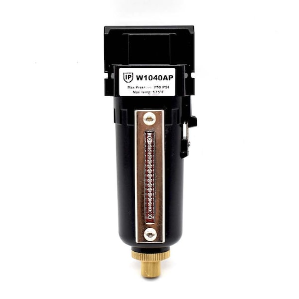 Interstate Pneumatics W1040AP 1/4" Standard – Metal Bowl Filter For a pneumatic system to work efficiently, the air must be clean, to safeguard the equipment from contaminant damage. Filters basic purpose is to remove moisture and particles that may be harmful to pneumatic equipment. It protects tools and equipment by removing most solid and liquid contaminants. This may include dust, dirt, pipe scale, rust, liquid water and bulk oil. Helps prevent costly damage to air tools caused by rust, scale and moisture. Efficiently traps moisture while passing through clean, dry compressed air. Accessories for this filter like metal bowl, micron filters, sight glass, mounting bracket, coalescing filters are also available. Convenient minimum installation time into your compressed air system.