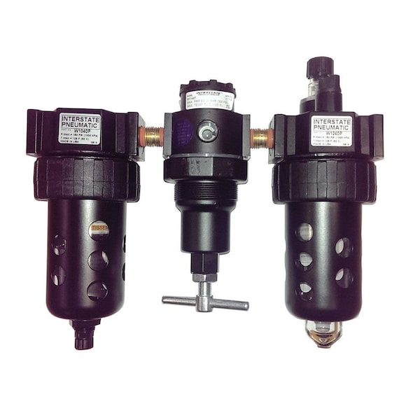 Interstate Pneumatics 1/4" Standard "T" Handle Poly Bowl Filter Regulator Lubricator - Integral Combo. Clean air is a key ingredient that enables effective and efficient use of tools, equipment, and machinery in almost every industry. For preventing your air tools from rusty air & foggy atmosphere & keep them in working condition for a long time we suggest use of air preparation devices such as filters, regulators, and lubricators. As a modular component, this filter-regulator-lubricator can quickly be attached with Convenient minimum installation time into your compressed air system. Provides clean, dry, regulated compressed air over a wide range of airflows with accurate control and fast response. Efficiently traps moisture while passing through clean, dry compressed air.