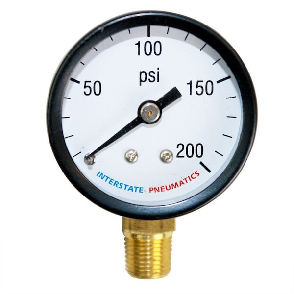 Interstate Pneumatics G2012-200 Pressure Gauge 200 PSI 2" Diameter 1/4" NPT Bottom Mount.