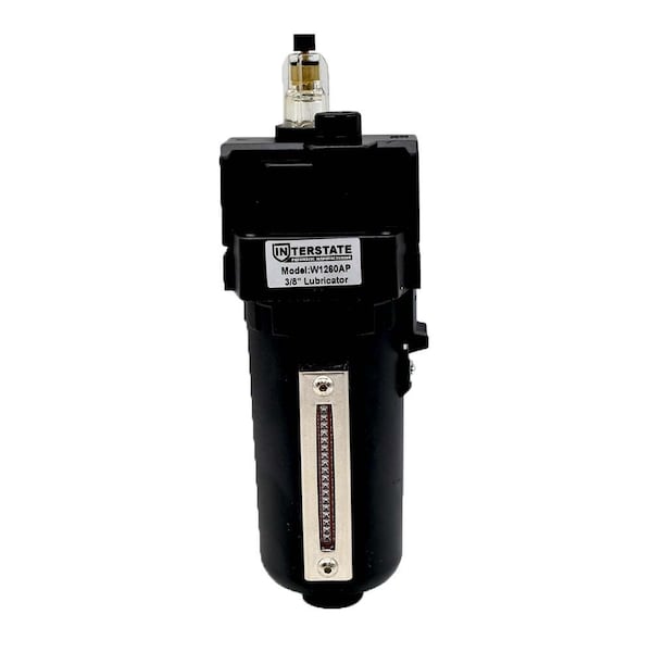 Interstate Pneumatics, 3/8" Large Metal Bowl Lubricator. Air lubricator provides automatic line lubrication to extend air tool life. Lubricator injects air tool oil in line to lubricate your air tools and keep them running smooth. Adjustment knob on top regulates amount of oil distributed. Always install in a line used for air tools only as oil will contaminate paint guns. It can be freely combined with other air source treatment products.