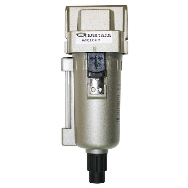 Interstate Pneumatics, 3/8" Metal Body Air Filter. General purpose filter protects tools and equipment by removing most solid and liquid contaminants. This may include dust, dirt, pipe scale, rust, liquid water and bulk oil. A 25-micron filter element removes the smallest of particles. Metal bowl with sight glass allows easy monitoring of fluid level. Quick-release bowl and quarter-turn drain for easier use. Help prevents costly damage to air tools caused by rust, scale and moisture. Efficiently traps moisture while passing through clean, dry compressed air. Convenient minimum installation time into your compressed air system. It can be freely combined with other air source treatment products.